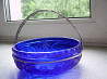 Конфетница синяя с мельхиоровой ручкой из СССР